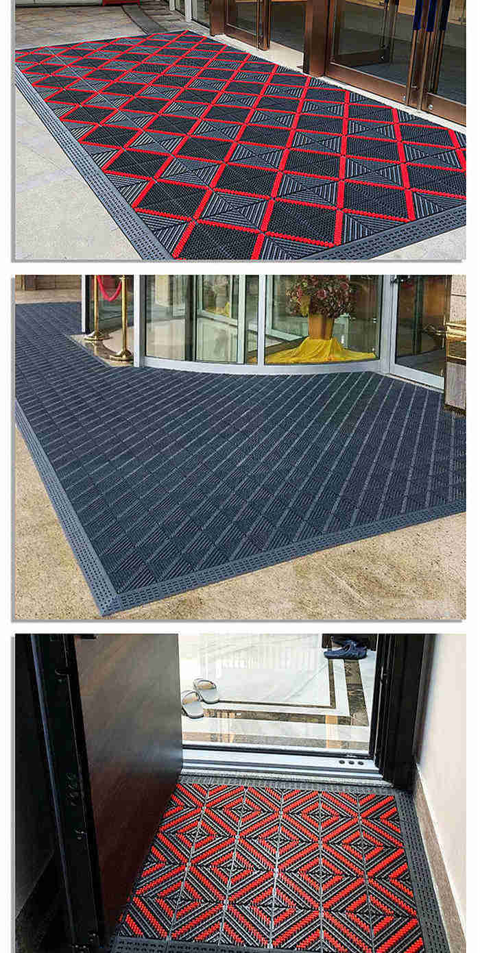 Lo zerbino 3 in 1 con spazzola a setole, noto anche come zerbino d'ingresso con spazzola a setole, è realizzato con setole in nylon e materiali in gomma. Si posiziona davanti alla porta per un utilizzo intensivo.