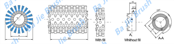 Questo pennello è anche conosciuto come spazzola a rullo segmentata, spazzola a segmenti modulari, O spazzola a rullo modulareProgettato con una struttura modulare, questo sistema di spazzole fornisce una soluzione intelligente per situazioni in cui spazzole a rullo lunghe sono richiesti ma sostituzione facile e veloce dei segmenti usurati è essenziale.