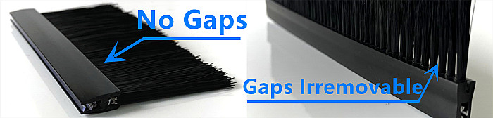 Rispetto a una spazzola flessibile a clip con profilo a strisce, il vantaggio principale di questa versione rigida è la densità delle setole molto più elevata. Le spazzole flessibili a clip sono solitamente realizzate con un processo di fissaggio a graffette, il che significa che alla base ci sono piccoli spazi tra i fori delle setole. Questi spazi rendono difficile ottenere un ingresso cavi completamente sigillato.