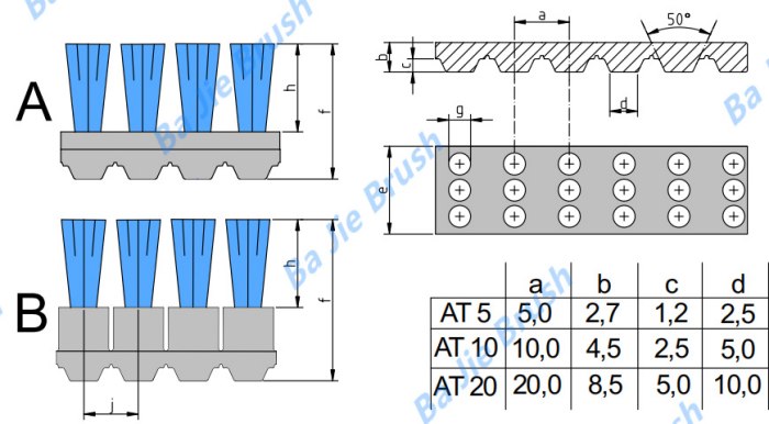 Nostro Spazzola per cinghia di distribuzione È composta da cinghia dentata e setole in PU, adatta per applicazioni che richiedono la pulizia verticale e orizzontale. La spazzola è disponibile in sei profili di cinghia standard: