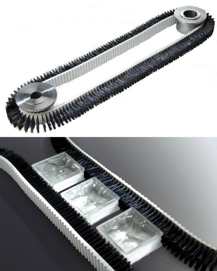 La nostra spazzola per cinghia dentata con tacchetti in PU può essere installata e ruotata su pulegge dentate standard per numerose applicazioni.
